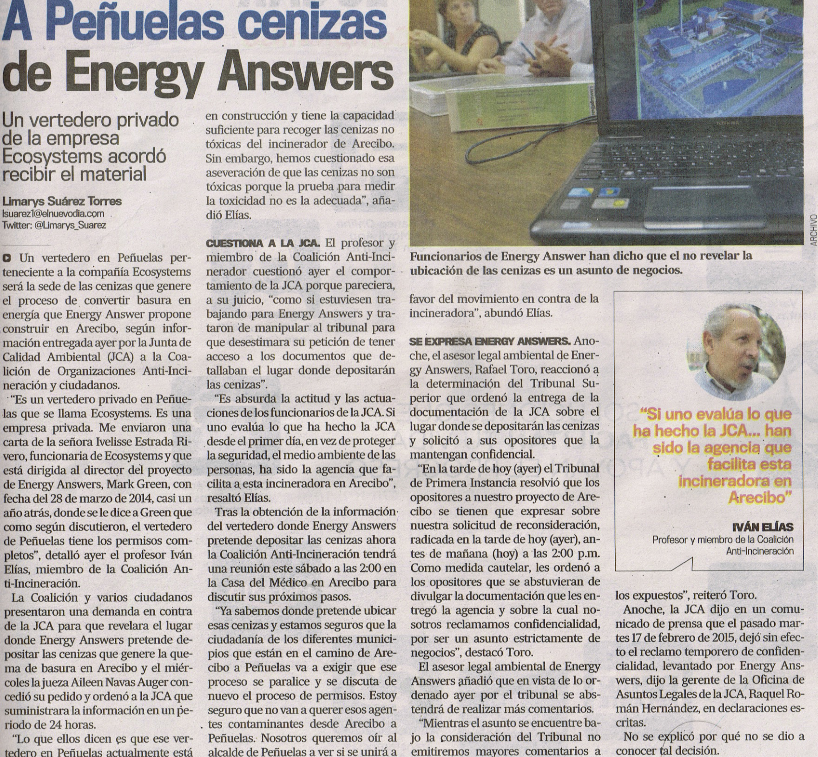 A Peñuelas cenizas de Energy Answers
